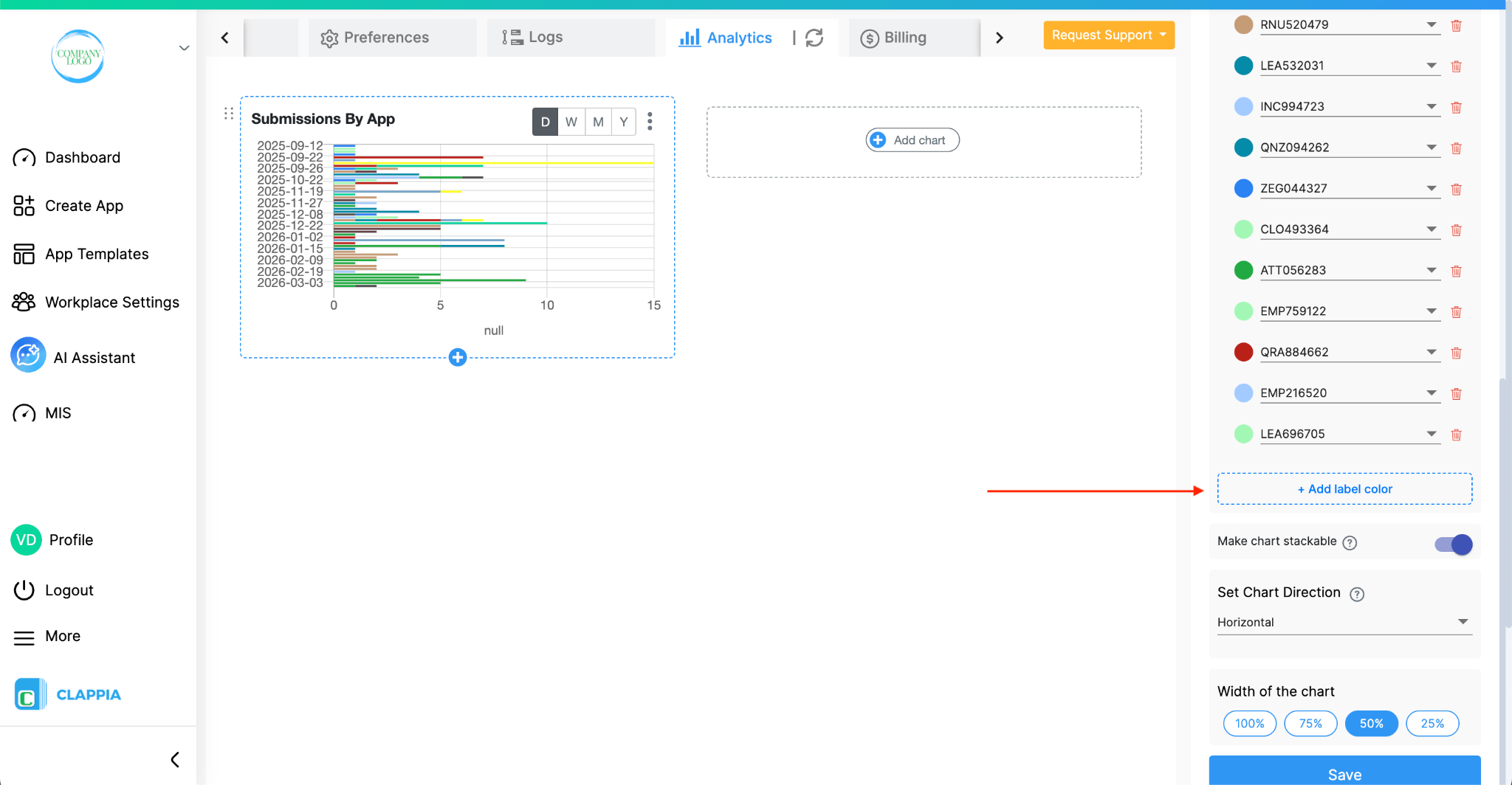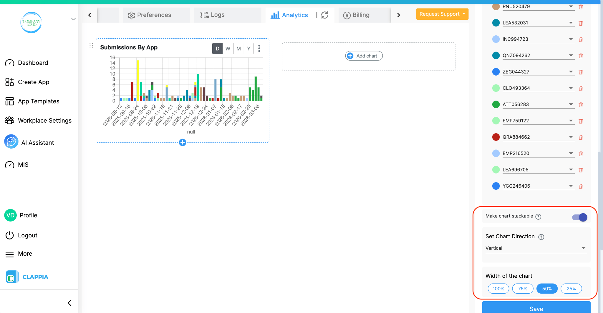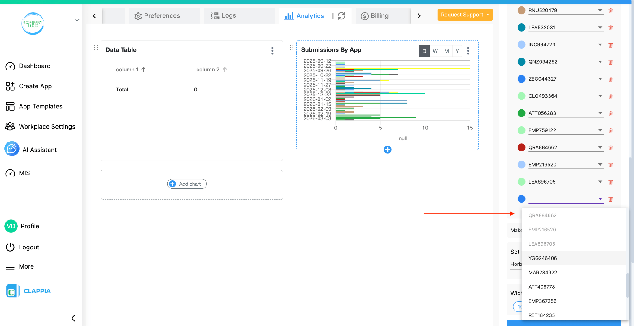 Workplace Analytics is currently available only on the web version of Clappia. Workplace admins will not see the Workplace Analytics section on the Clappia mobile app.