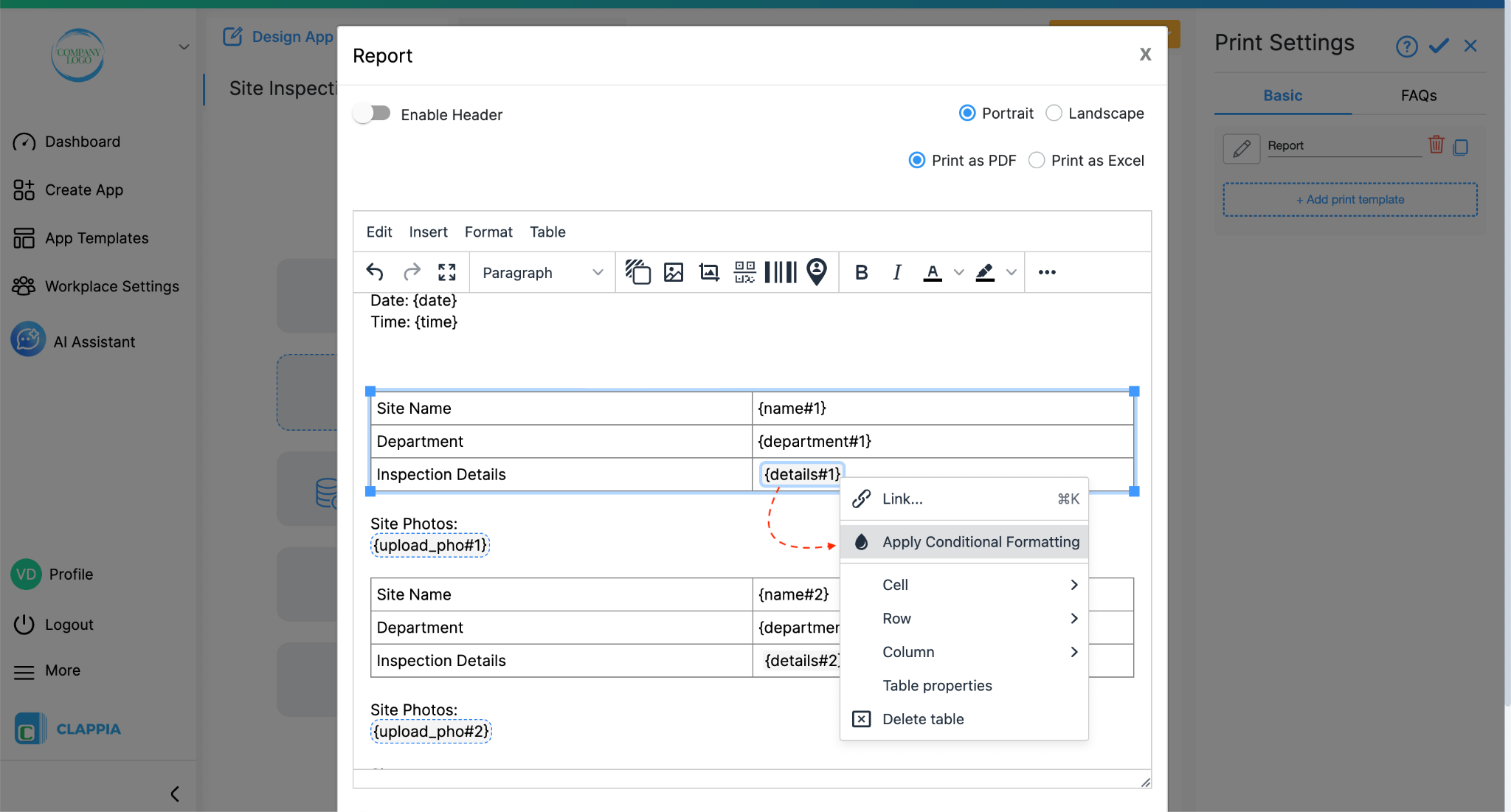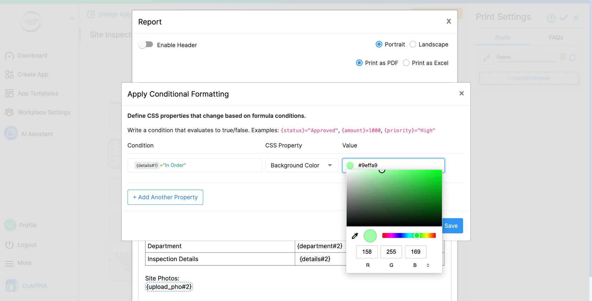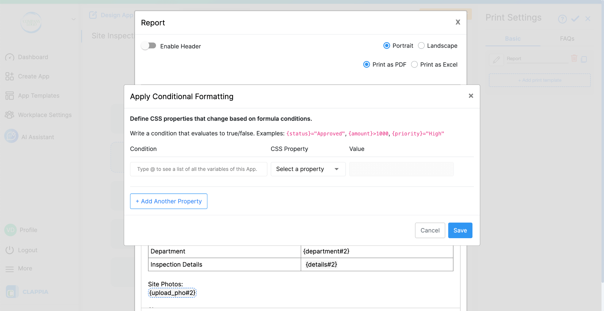 You can now apply conditional formatting to any text inside the Print Template. This allows you to change how specific text appears in your PDFs, or hide it completely, based on conditions using field variables and formulas.