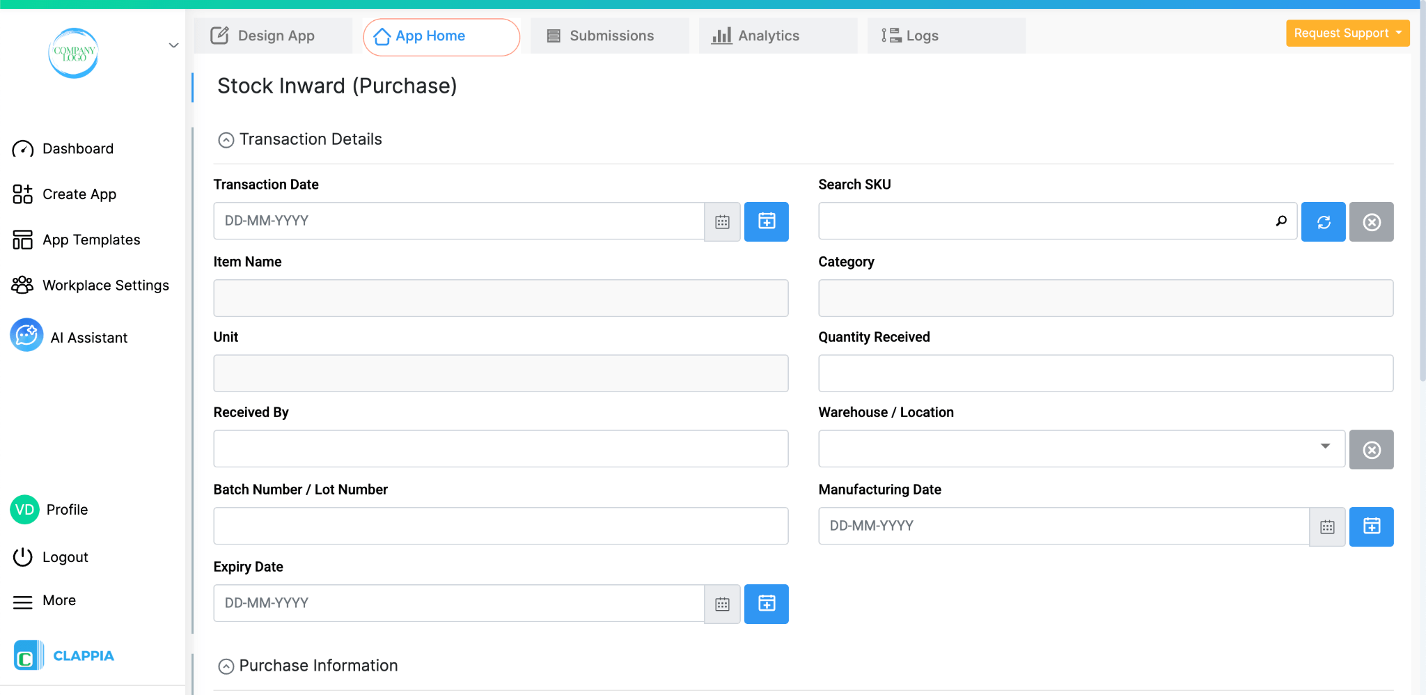 However, there are situations where you may want to maintain a more detailed tracker that records specific changes or movements across multiple apps. These details may not always be captured automatically by the system or may depend on how your business wants to track inventory activity. In such cases, Clappia’s workflows and app features can be used to create a separate tracking mechanism that records these movements in a structured way according to your requirements.