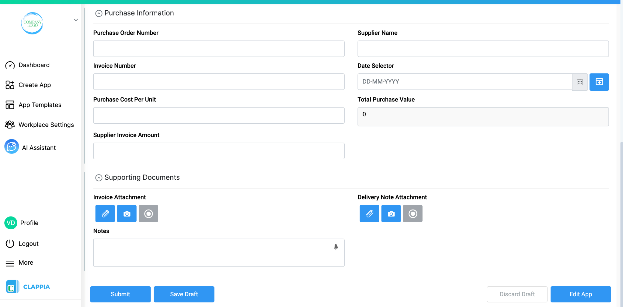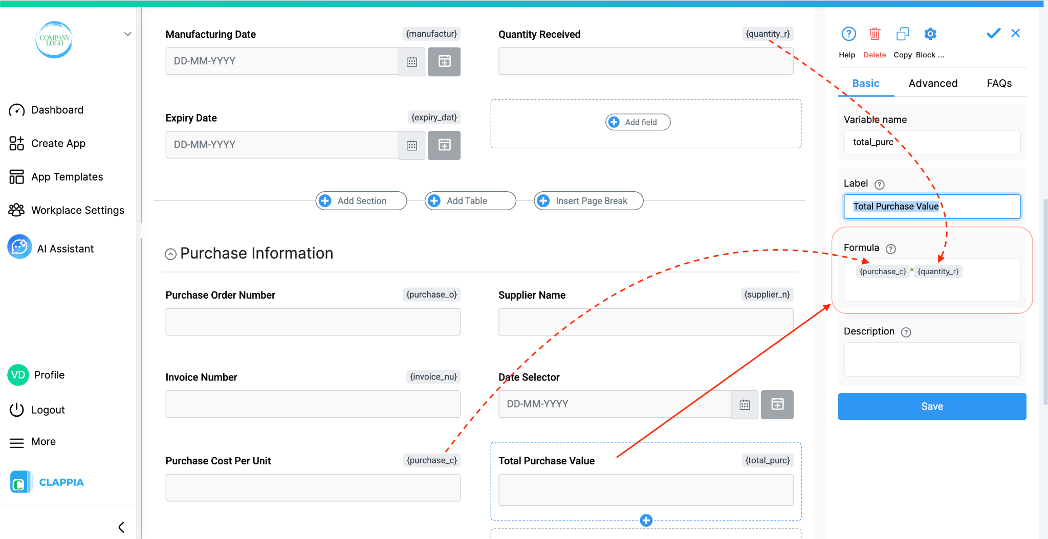 This system makes use of the following Clappia features. Each one links to its dedicated help article if you need more detail on configuration.