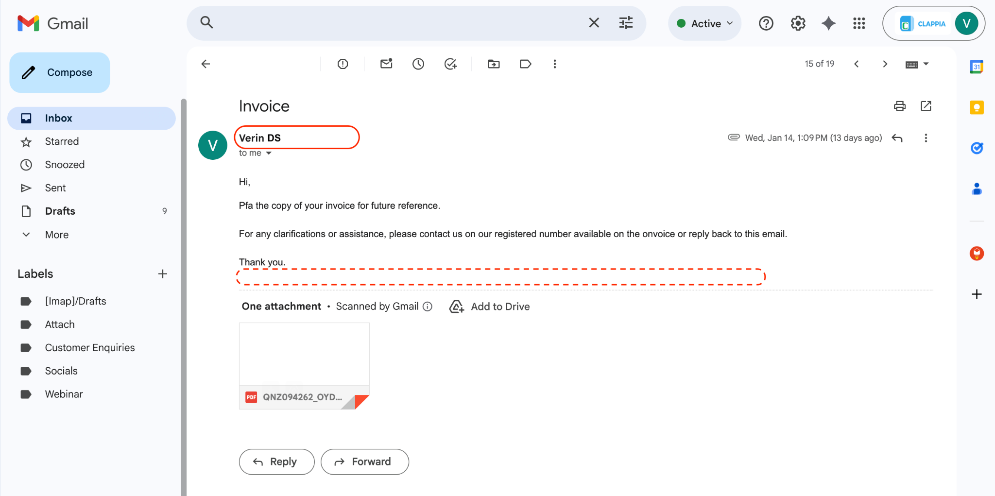 When an Email workflow step is executed, Clappia sends the email using a default sender address.